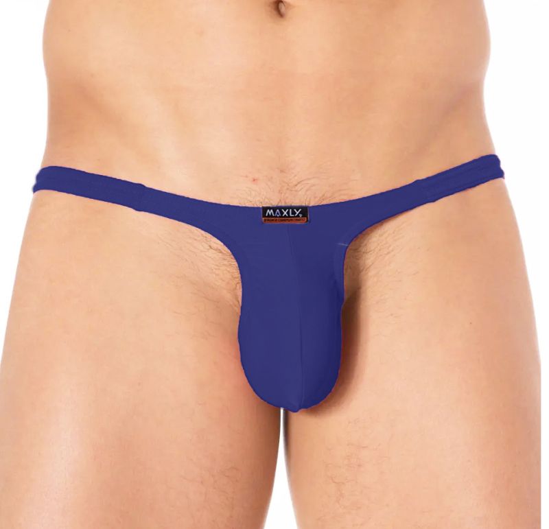 Изчистен мъжки стринг, изработен от син микрофибър.