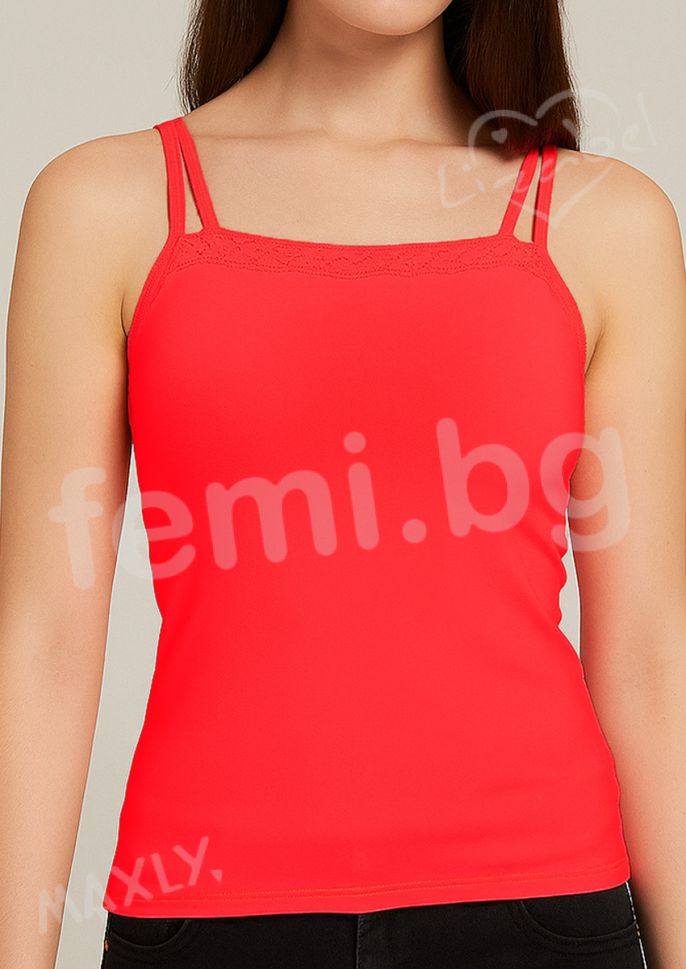 Дамски корсаж изработен от пениран памук и дантела - в червен цвят.